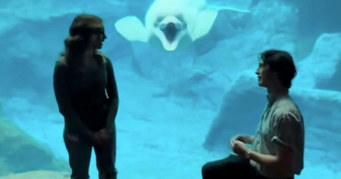Гевін Халберг з американського штату Джорджія освідчився своїй коханій, Олівії Волш, в місцевому океанаріумі. У той момент, коли він став на коліно, діставши обручку, до пари виплив кит-білуха й відкрив рота. Про цей випадок новоспечена наречена розповіла на своїй сторінці у TikTok.