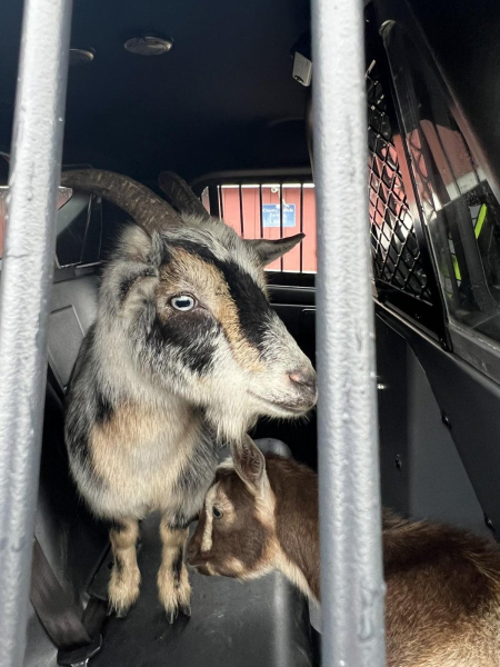 У соцмережах опублікували знімок, де кози сидять на задньому сидінні поліцейської машини. Співробітники поліції зазначили, що тварини були дуже милими, але могли нашкодити людям.