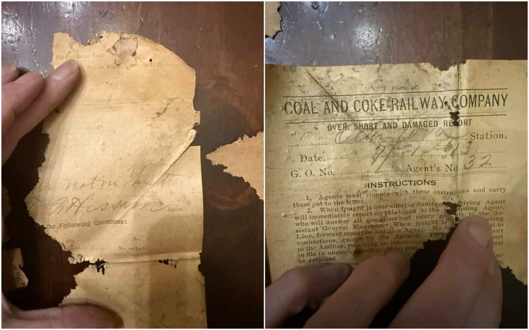 “Ми знайшли кілька цікавих речей у будинку, відколи почали ремонт. Зокрема, це був акт про нестачу або пошкодження вантажу в поїзді. Там є кілька імен, які можна розгледіти. Ймовірно, документ адресувався залізниці у містечку, де я живу. Депо й досі стоїть вниз по вулиці, але вже закрите, а залізничні колії перенесли нагору. На жаль, папірці порвані на багато шматків, тож важко сказати, про що саме там йшлося”, — розповідає Утт в інтерв’ю Newsweek.