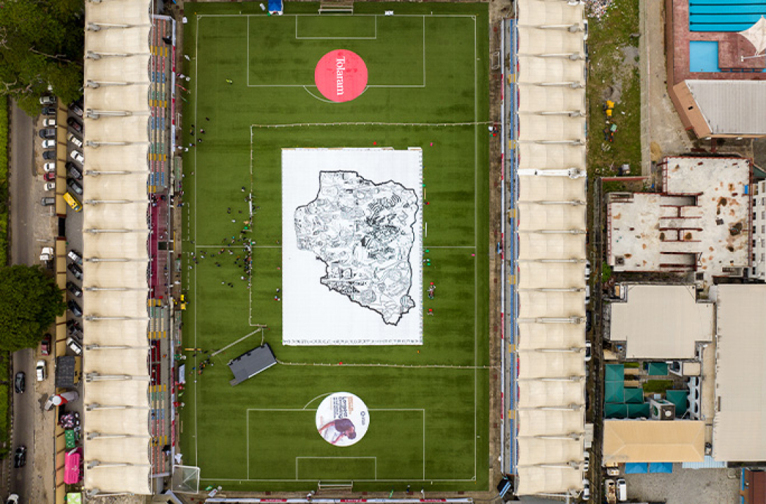 “Гігантський витвір мистецтва Фоли Давид-Толарам, створений на полі стадіону “Моболаджі Джонсон Арена” в Лагосі, — це любовний лист до рідної країни, що зображає її різноманітну культуру”, — йдеться у повідомленні.