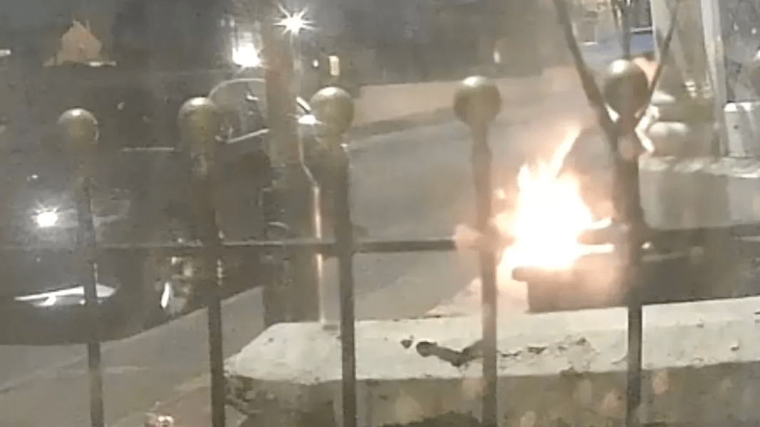 Інцидент був знятий на камеру сусіда. На кадрах видно, як двоє молодих людей підходять до будинку, а потім один із них дістає з кишені щось схоже на запальничку, щоб підпалити мішки. Згодом було видно, як після пожежі вони втекли з місця події. Через кілька хвилин на камеру потрапило велике полум’я, а також була помічена поліцейська машина, що проїжджала повз.
