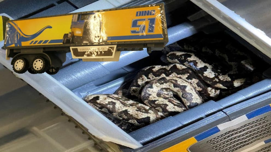 Під час сканування коробок з вантажем митники помітили рух між дитячими іграшками, які пересилали, і виявили, що в коробці були кубла змій.