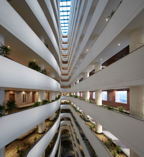 Співробітники Morphogenesis обрали дизайн, що віддалено нагадує термінал аеропорту — дев’ять прямокутних будівель, з’єднаних довгим центральним коридором. Що стосується фінансових витрат на зведення: будівля обійшлася в 32 мільярди рупій ($388 мільйонів).