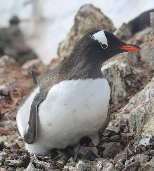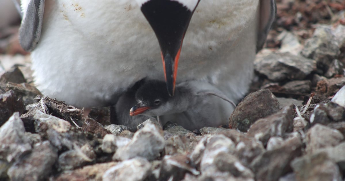 На скелі біля лабораторії з дослідження геокосмосу біолог експедиції Світозар Давиденко виявив одразу двох малюків субантарктичних пінгвінів. Про це розповіли у Національному антарктичному науковому центрі.