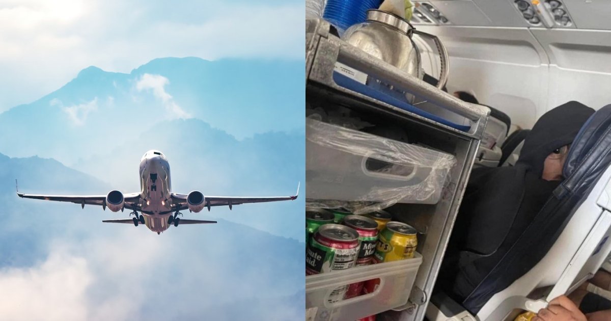 На знімку видно, як візок із напоями рухається проходом, а поруч з автором у кріслі сидить людина, вкрита ковдрою. Її силует і навушники створили моторошну ілюзію, що нагадує істоту з культового фільму “Інопланетянин”.