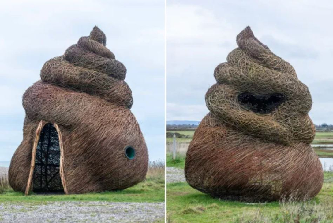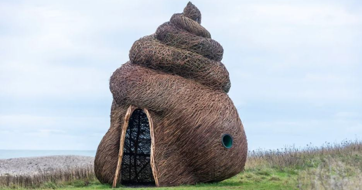 На оглядовому майданчику заповідника “Медмеррі”, що поблизу Чичестера (Велика Британія), встановили 4,5-метрову скульптуру під назвою “Барвінковий притулок”. Вона сплетена з вербових гілок й імітує крихітного морського равлика. Втім, містяни бачать в об’єкті сучасного мистецтва дещо інше й звинувачують чиновників у даремній траті бюджетних грошей. Про це пише видання The Sun.
