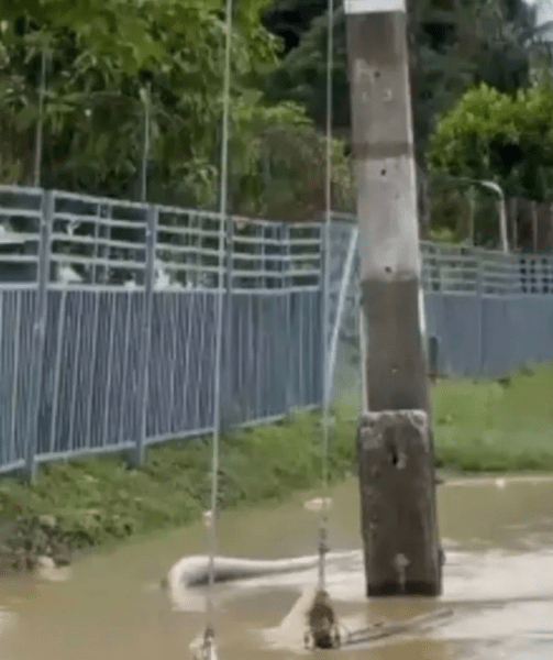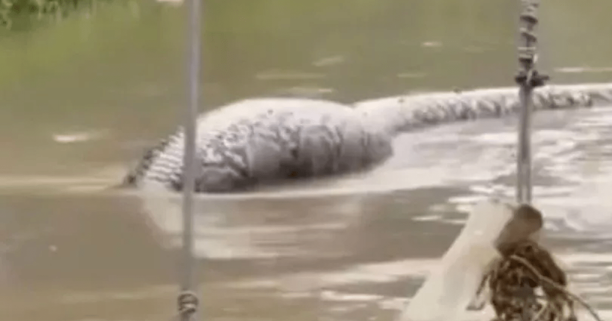 На кадрах видно масивну змію, частково занурену в паводкові води після найсильнішої повені, що обрушилася на регіон. Змія виглядає пораненою і застряглою на спині. Особливу увагу привернула помітна опуклість біля голови пітона, через що користувачі соцмереж припустили, що він міг проковтнути собаку.