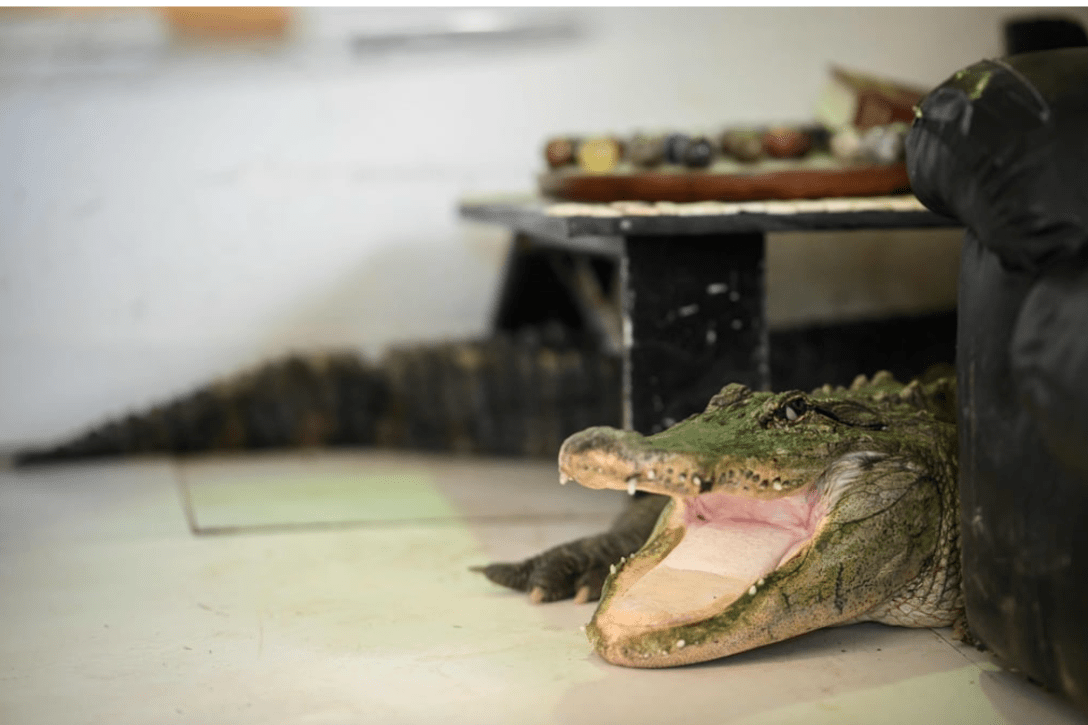Коли у вітальню заходить хтось із незнайомців, то раптом із журнального столика лунає гарчання двометрових алігаторів Гатора й Аллі.