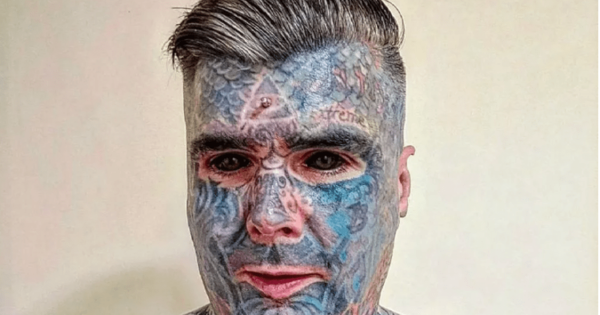 Найбільш татуйована людина Великої Британії Інк-Айт з Бірмінгема хоче позбутися своїх модифікацій тіла, але стверджує, що його стримують законодавчі обмеження. Про це пише Daily Star.