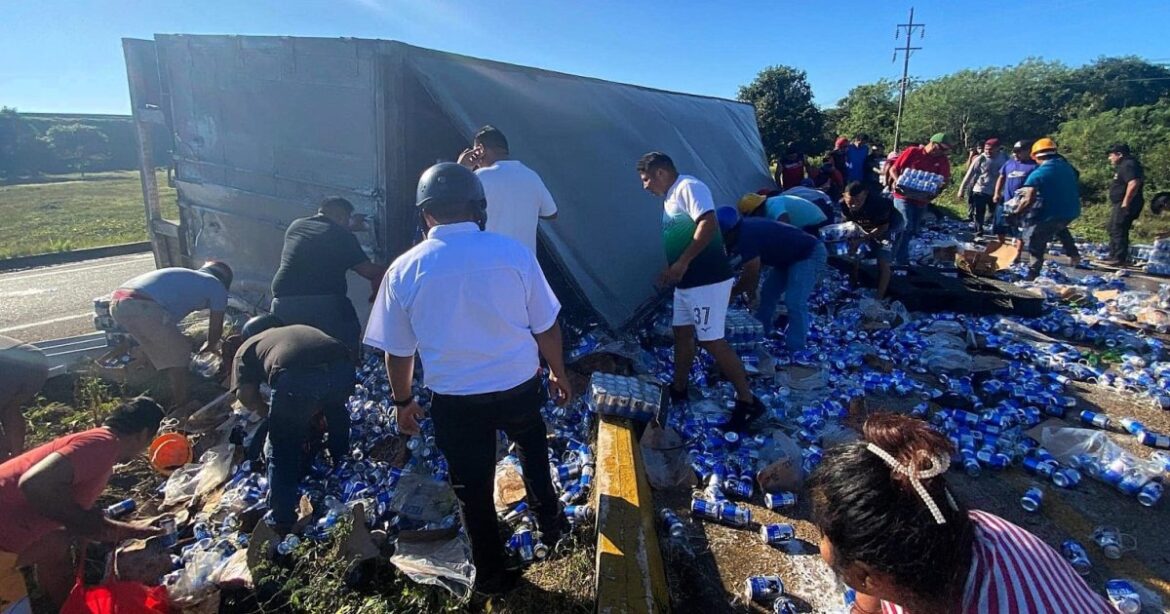 У Мексиці на трасі Меріда-Кампече стався курйозний інцидент — десятки людей кинулися грабувати перевернуту вантажівку, з якої висипалися 25 тонн банок пива. Про це написало Need To Know.