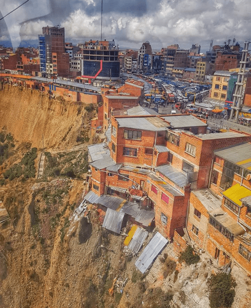 У місті Ель-Альто, розташованому поруч зі столицею Болівії Ла-Пасом, сотні будівель на краю крутої земляної кручі перебувають під загрозою руйнівних зсувів. Попри явну небезпеку, багато місцевих жителів відмовляються залишати свої будинки, пов’язуючи це з місцем роботи або культурними традиціями. Про це пише Oddity Central.
