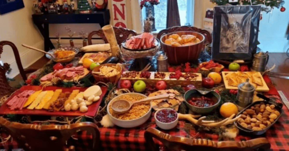 Серед інгредієнтів її святкової вечері сушені фрукти, горіхи, соуси та консерви, які зберігаються в її підземному бункері.
