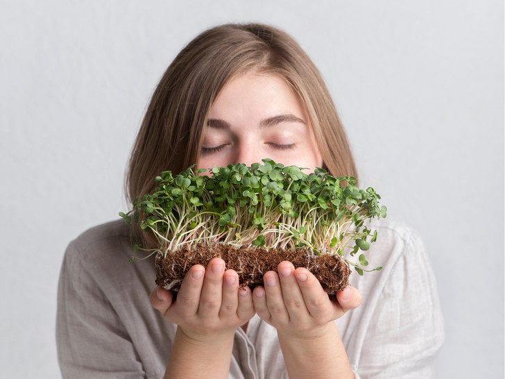 Мікрозелень — це городина (овочі, трави, злакові), яку зібрали після пророщування. Врожай збирають, коли в рослин з’явились 2-3 справжніх листочки. Розмір переважно до 15 см. Мікрозелень дуже корисна для здоров’я. З неї готують смузі, додають до салатів, супів та сендвічів.