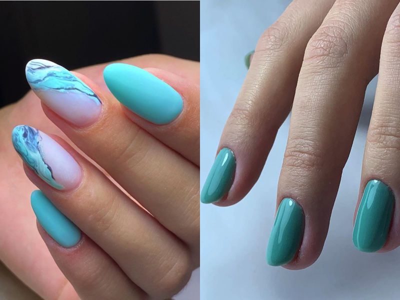 Аквамарин став логічним продовженням тренду на свіжий, «прохолодний» настрій в образі. Він підкреслює засмагу, робить шкіру світлішою, а руки — доглянутими. І якщо навесні на піку були фісташковий і молочний, то зараз — час кольору води.