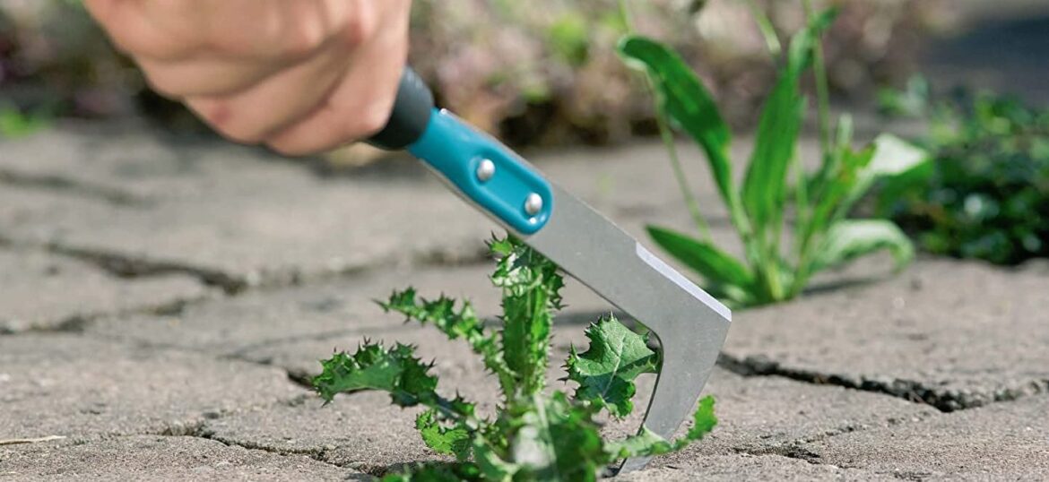 Можна чистити шви механічним способом за допомогою гострого садового ножа, він має таку форму, що ним зручно глибоко заходити під корінь рослини. Робіть так, щоб коріння не приривалося та бур’ян не почав знову відростати. Після цього зберіть все з бруківки.