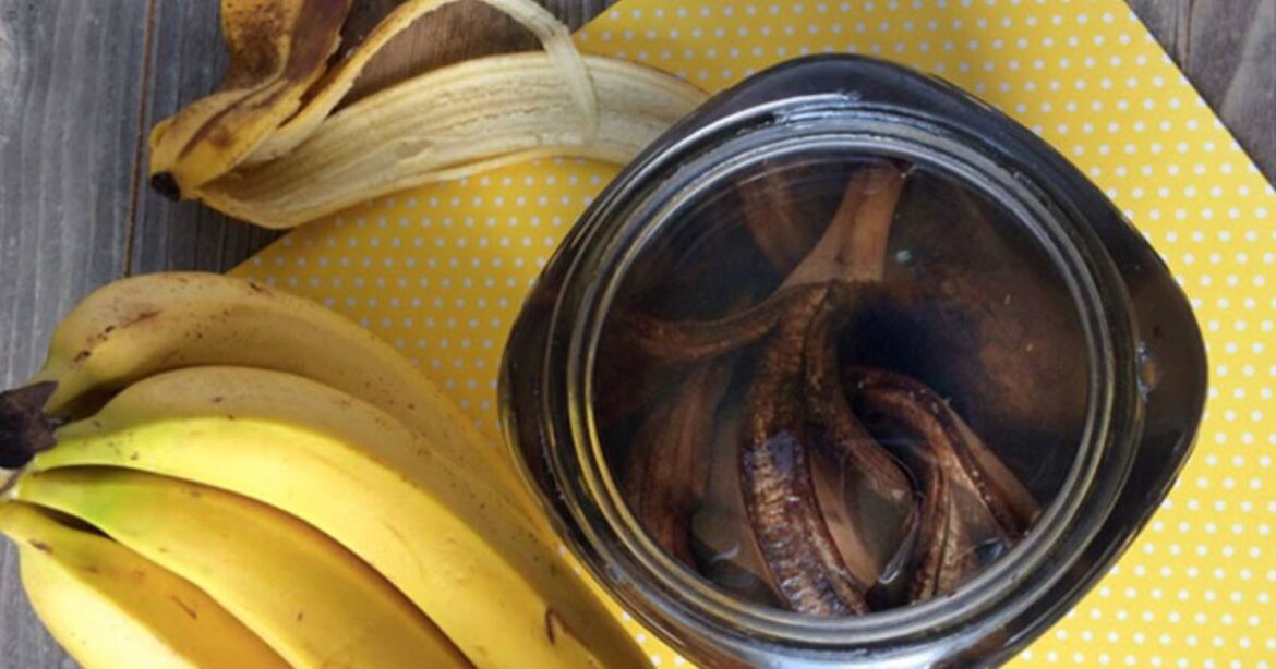 Банановий настій приготувати легко та просто. У трилітрову банку або будь-яку іншу посудину покладіть шкірку кількох бананів та дрібку цукру.