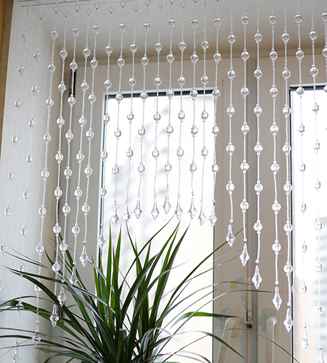 Традиційно нитки з великими декоративними бусинами використовують замість міжкімнатних дверей. Тепер дизайнери пропонують замінити ними віконні штори.