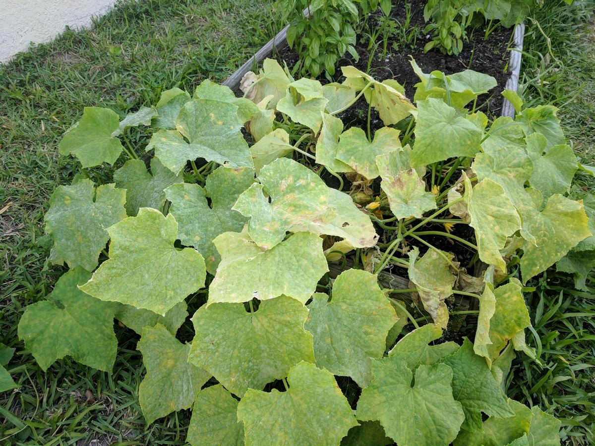 Бліде листя вказує на те, що огіркам не вистачає азоту. Найкращим швидким засобом буде настій бродіння з курячого посліду та води. Якщо ж у вас дачна ділянка чи в місті і з курячим послідом дефіцит, то знайдіть голуб’ячий.
