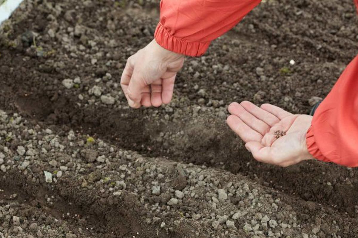 Спочатку треба підготувати ґрунт. Проведіть борозенки завглибшки 5-6 см. Посійте насіння, щоб воно не розліталося й краще видно було у лунках, можна змішати його з піском. Замульчуйте грядку торфом з перегноєм навпіл, утрамбуйте і присипте листям. як випаде сніг, то насипте його на грядку.