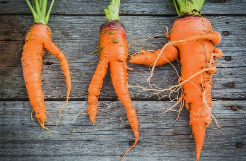 Також впливає на деформування моркви нерегулярний полив. Якщо під час посухи грядку не поливали, а потім йдуть рясні дощі – морква деформується та тріскається у ґрунті. Дотримуйтеся правил поливу.