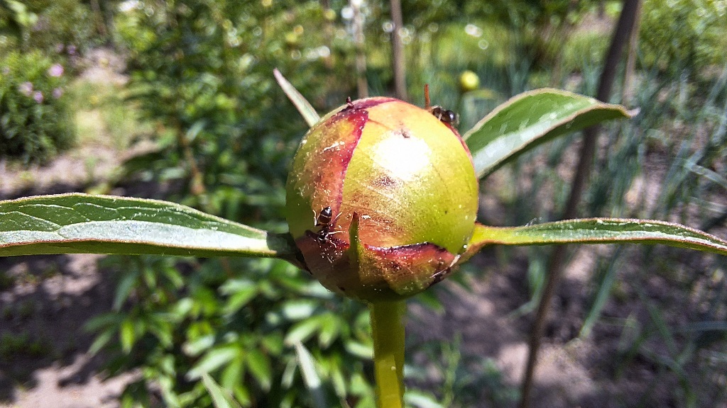 На бутонах півоній мурахам просто медом намазано. Вони так і мандрують від землі доверху. Насправді, там не мед, а солодка медвяна роса. Не всі квіти її утворюють. Півонії належать до тих різновидів, в яких вона виділяється. Мурахи з задоволенням нею харчуються.