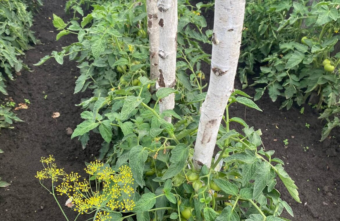 Такі кущі легше обробляти проти шкідників та захворювань. А також значно легше їх удобрювати. Мульчування, прополювання від бур’янів та розпушування ґрунту теж зручніше робити, коли томати підв’язані.