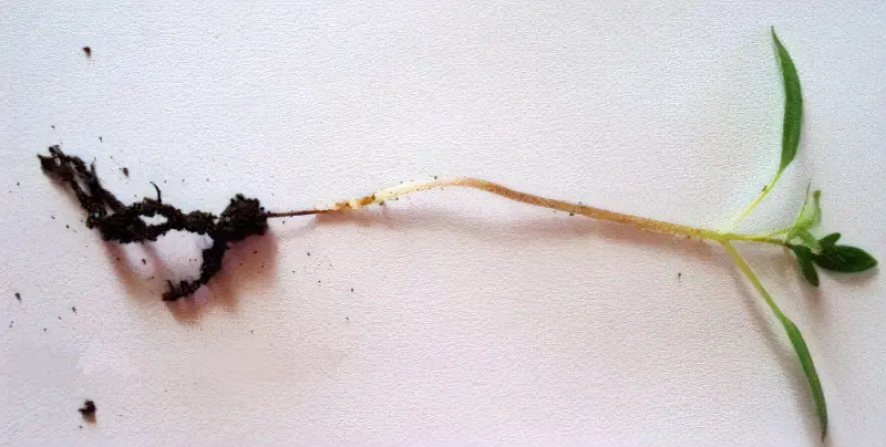 Під час пікірування розсади треба уважно роздивитися кожну рослинку. Якщо стебло дуже тоненьке по середині, а сама рослина жива і має корінь, не варто хвилюватися. Річ у тім, що розсада помідорів може пускати коріння по всьому стеблу, якщо воно буде у ґрунті.
