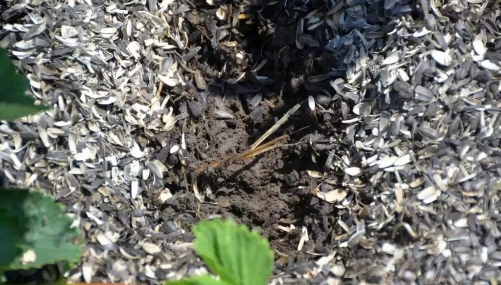 Розсипте лушпиння навколо рослин, щоб утворився шар завтовшки 2-3 сантиметри. Воно не дасть проростати дрібному бур’яну й утримуватиме вологу. Але на осінь доведеться прибрати мульчу, щоб не розводити на ділянці гризунів.