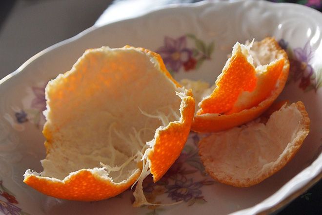 Цитрусові шкірки можна потім відправити в шафу, де висить одяг. Такі мандаринові шкірки стануть ефективним захистом від молі, яка не любить такі запахи.