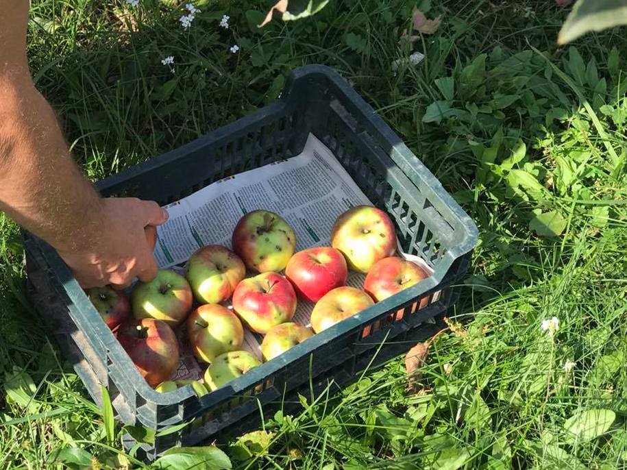 Періоди збору яблук, в залежності від сорту, починаються від вересня і до аж жовтня. Наприклад, сорт «Симиренківець» знімають з дерева в першій декаді жовтня. Так само «Ренет Симиренка» чи сорт «Росавка», «Айдаред».