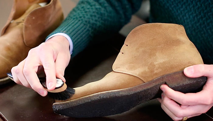 Пара допоможе розправити ворс та пом’якшити текстуру матеріалу. Тепер візьміть спеціальну щітку для нубуку для потріть забруднені місця.