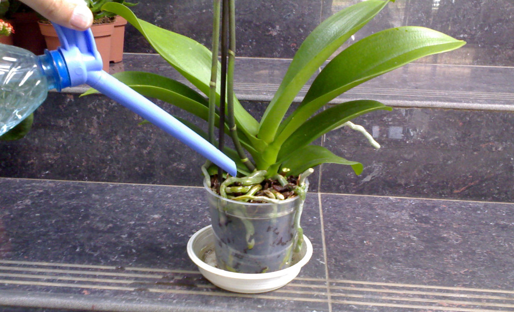 Орхідеї треба поливати не часто, але рясно. Якщо коріння буде постійно зволожене, то квітка з часом згниє.