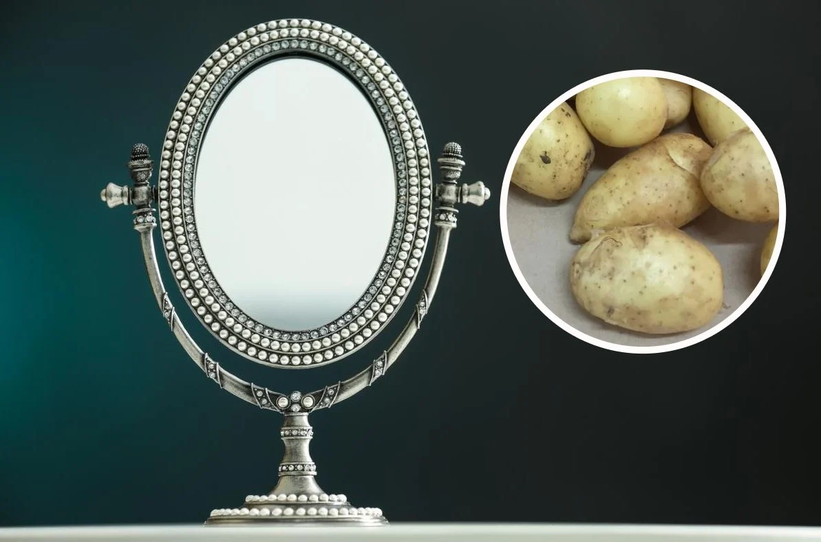 Розріжте навпіл картоплину та обробіть нею поверхню. Після цього протріть вологою ганчіркою, а потім сухою. Побачите, як блищатиме дзеркало після такої процедури.