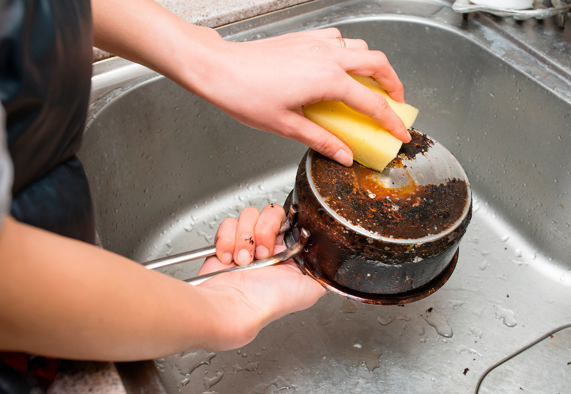 Дуже пригорілу каструлю можна врятувати за допомогою оцту та лимонної кислоти. Налийте у постраждалу посудину 400 мл води, додайте 50 мл оцту й пачку лимонної кислоти. Проваріть протягом 10 хвилин. Після цього злийте брудну воду, зніміть з дна підгорілий шар за допомогою мочалки. Вимийте під проточною водою.
