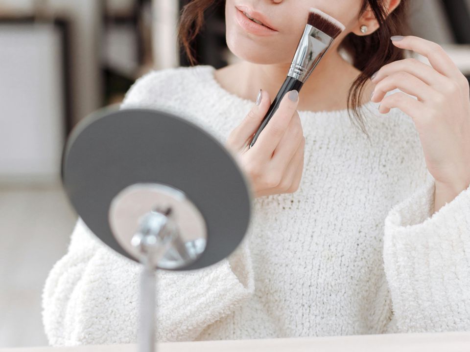 Одношаровий макіяж передбачає нанесення всіх коригувальних продуктів — рум’ян, бронзера, хайлайтера та консилера — до використання тонального крему.