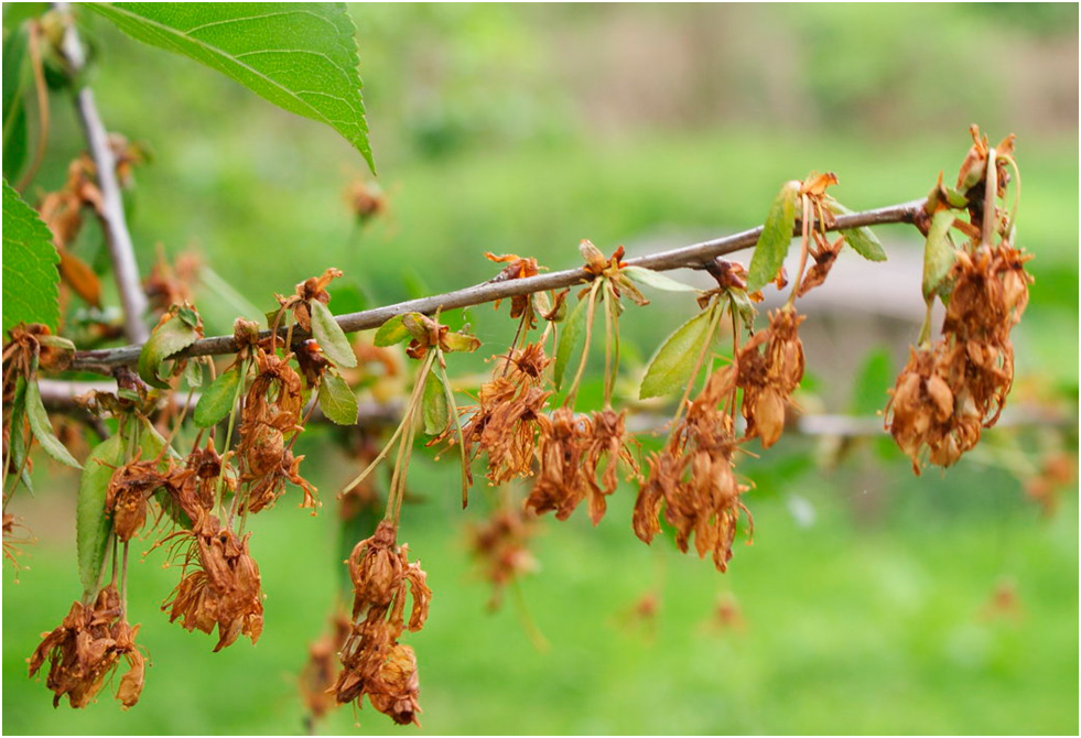Подивіться уважно на дерево та всі його пагони. Якщо ви помітили, що окремі з них виглядають засохлими, ніби обпалені, — це яскраві ознаки грибкового захворювання. Проблема в тому, що спори розлітаються й на інші дерева.