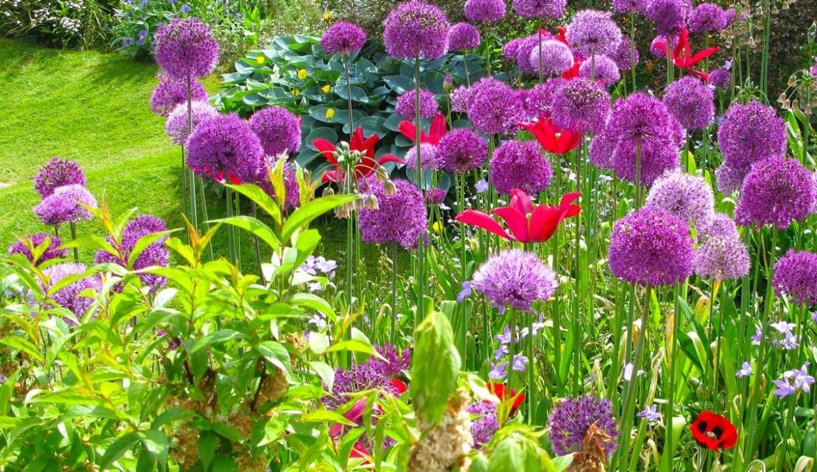 Алліум – декоративна цибуля, яка цвіте неймовірно гарною квіткою. Ця рослина невибаглива у догляді. Їх існує багато різновидів. Квітка дуже гарно виглядає у квітнику. Поруч з алліумом можна садити іриси, примулу та герань.