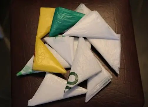 Просто кожен пакет треба згорнути у трикутники та закріпити хвостик, щоб пакет не розкривався.