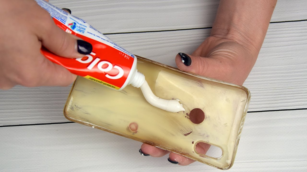 Силіконовий чохол можна легко очистити за допомогою зубної пасти. Для цього просто старою щіткою потріть весь чохол, залиште на 3-5 хвилин. Після цього змийте, висушіть і насолоджуйтеся прозорістю, мов щойно в нового чохла.