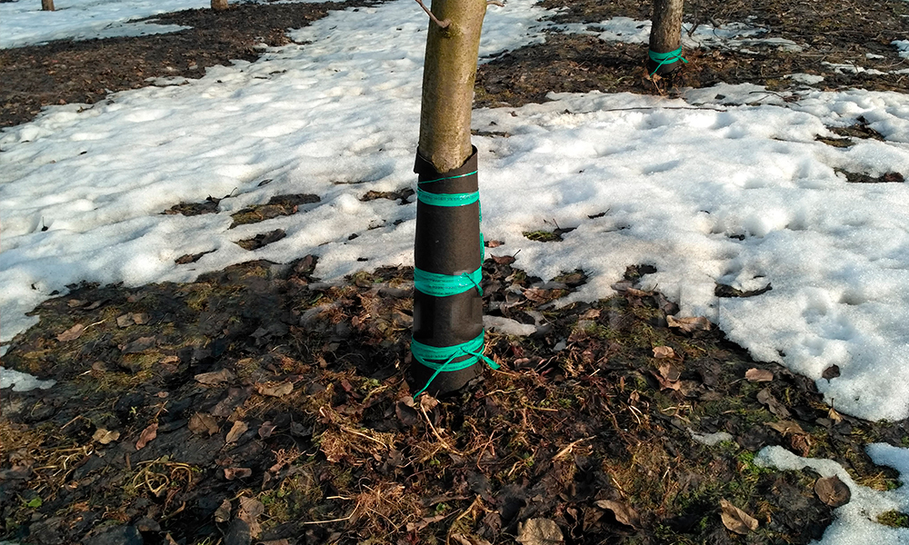 Не використовуйте для утеплення плівку, це не піде деревам на користь. Краще взяти для цього агроволокно.