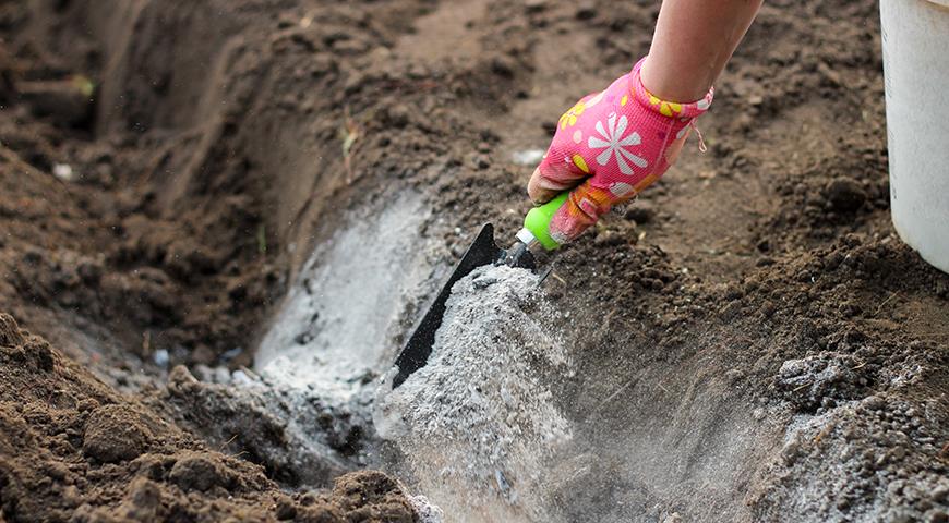 Золу не рекомендується вносити в лужні ґрунти. Її потрібно використовувати в сухому вигляді з подальшим перекопуванням ґрунту. Розхід засобу становить від 50 до 300 г на 1 кв.м. Залежить від складу ґрунту.