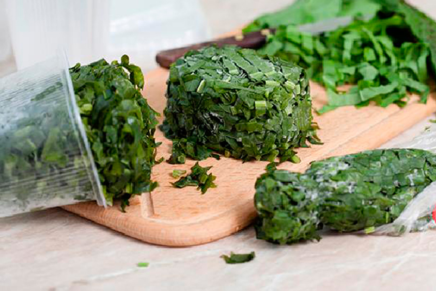 Подрібніть листя ножем або за допомогою блендера, щоб взимку розморозити вже нарізаний щавель для борщу. Тепер залишилося упакувати порційно.