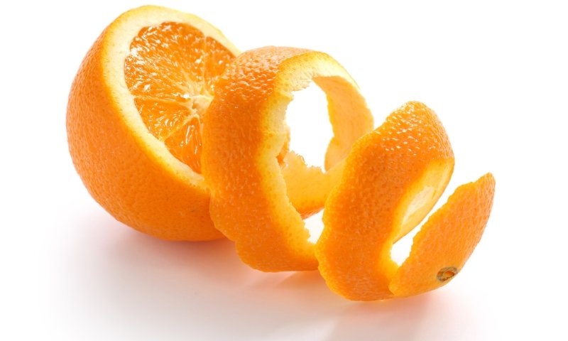 Коли апельсин очищений, приблизно 95% випадків шкірка відправляється в сміття.