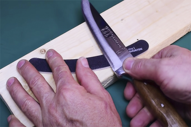 Також ситуацію мрятує звичайна пилочка для нігтів. Треба покласти пилочку на тверду поверхню й провести лезом ножа по пилочці, повторіть процедуру декілька разів.