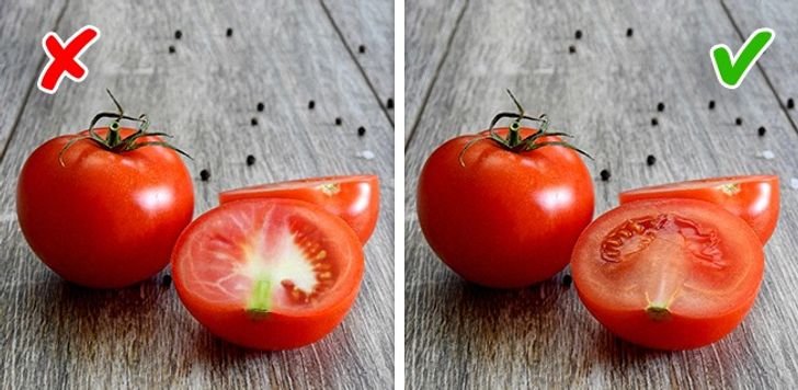 1. Найбільше нітратів у помідорах з товстою шкіркою, білим м’якушем і товстими прожилками. Саме тому перед приготуванням такі томати фахівці радять вимочувати у воді 30-40 хвилин. Не варто поспішати вживати у сирому вигляді, краще піддавати термічній обробці.