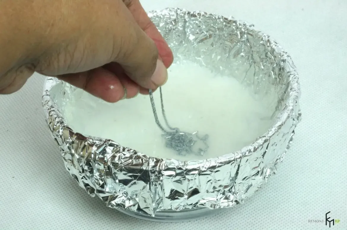 Один із найпростіших способів відбілювання срібла – використання солі та алюмінієвої фольги. Для цього розкладіть алюмінієву фольгу у дні миски, покладіть на неї срібні вироби, посипте їх сіллю та додайте гарячу воду. Процес окислення сприятиме відновленню блиску срібла.
