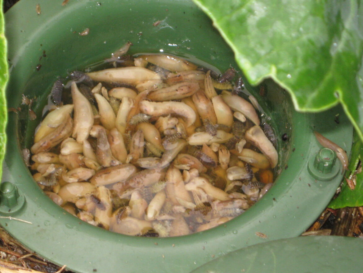 На ранок ви побачите, скільки зібралося гостей на медовий та капустяний аромат. Після цього слимаків треба буде знищити. Не викинути, а саме знищити, бо мають вони здатність переповзати, хоч і повільно, але все ж.