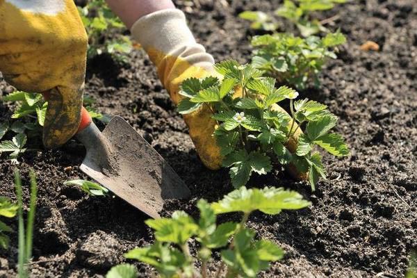 Видалити бур’яни та обрізати листя полуниці, залишивши лише серцевину.