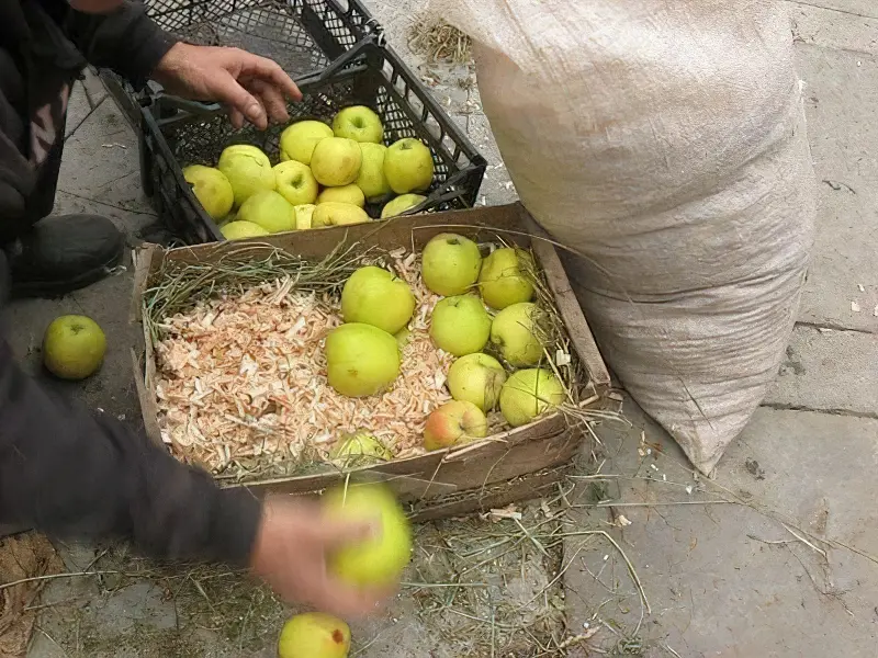У ящиках чи коробках шари яблук перекладають картоном. Краще складати так, щоб було 2 ряди, а не більше. Тримайте яблука у прохолодному місці. Це може бути підвал, погріб чи комора. У квартирі можна тримати на балконі.