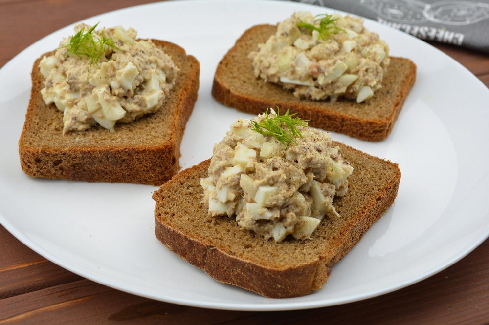 Змішайте разом рибу, цибулю та яйця, натерті на дрібній тертці. За бажанням яйця можна нарізати дрібним кубиком. Додайте сіль та перець. Заправте майонезом. Тепер сардина буде смакувати набагато краще. Відрізайте скибку улюбленого хліба та перекусіть. Смачного!